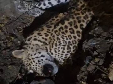 29 नवंबर को ऐसी स्थिति में मृत मिला था तेंदुआ।