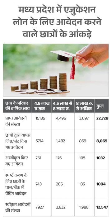 मध्य प्रदेश में शिक्षा ऋण के आवेदनों की स्थिति बैंकों की बेरुखी बयां कर रही है। बैंकों ने प्रदेश के 1,032 आवेदनों को सीधे तौर पर रिजेक्ट कर दिया है। 1,084 आवेदन अब भी बैंकों में लंबित (पेंडिंग) हैं, जिससे छात्रों का भविष्य अनिश्चित बना हुआ है।