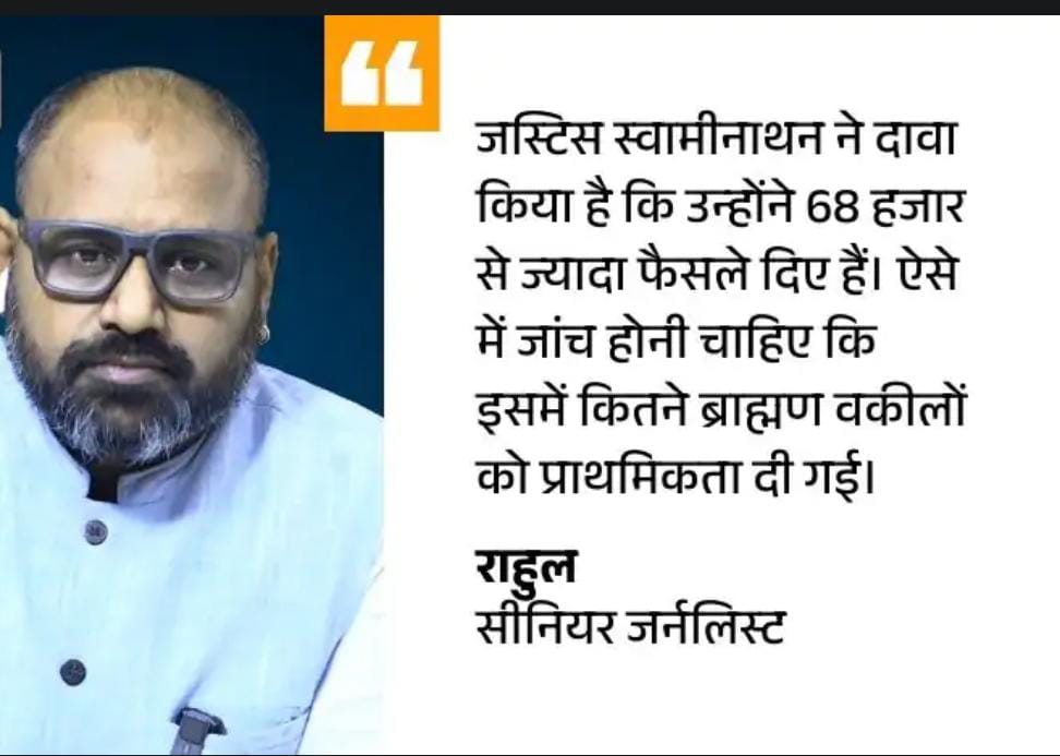 तमिलनाडु के मद्रास हाईकोर्ट में सीनियर एडवोकेट सारनाथन मदुरै बेंच के जस्टिस जीआर स्वामीनाथन पर जाति के आधार पर भेदभाव के गंभीर आरोप लगाते हैं। वे कहते हैं कि जस्टिस स्वामीनाथन का RSS की विचारधारा की ओर झुकाव है और वे ब्राह्मण वकीलों को तरजीह देते हैं। ये व्यवहार कानूनी निष्पक्षता के खिलाफ है।