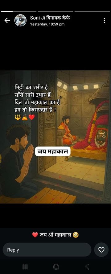 हर सोमवार दर्शन करने आते थे मित्र धर्मेंद्र पंड्या ने बताया कि सौरभ भगवान महाकाल के भक्त थे। उन्होंने मौत से कुछ घंटे पहले ही अपने वॉट्सएप स्टेटस पर लिखा था ‘मिट्टी का शरीर है, सांसें सारी उधार हैं, दिल तो महाकाल का है, हम तो किरायेदार हैं।’ महाकाल के दरबार में हर सोमवार दर्शन करने वाले श्रद्धालुओं ने सौरभ को सच्चा भक्त बताते हुए श्रद्धांजलि अर्पित की है।