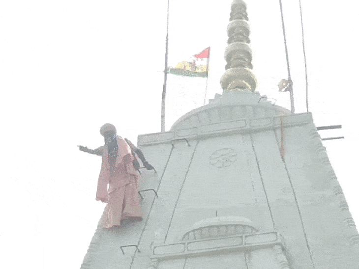 राजगढ़ के कालीपीठ रोड स्थित बाबा रामदेव मंदिर में शुक्रवार को अचानक तनावपूर्ण स्थिति बन गई। महंत कैलाश गिरी (52) अपने कमरे से सामान निकाले जाने से आहत होकर मंदिर के लगभग 100 फीट ऊंचे शिखर पर चढ़ गए और हाथ में ध्वज लेकर करीब तीन घंटे तक बैठे रहे।