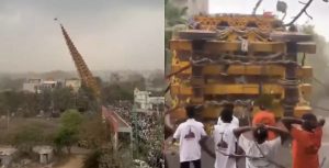 घटना का वीडियो सोशल मीडिया पर खूब शेयर किया जा रहा है। वीडियो में रथ को खींचने वाली भारी भीड़ दिखाई दे रही है। जब रथ पलट गया और धीरे-धीरे जमीन पर गिरता हुआ दिखाई दे रहा है, तो वे अपनी जान बचाने के लिए भागते हुए दिखाई दे रहे हैं।