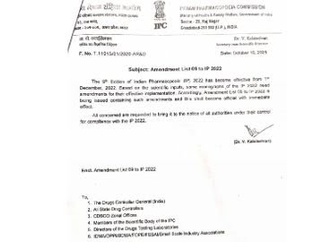 एडीशन ऑफ इंडियन फार्माकॉपिया (EOIP) 2022 में संशोधन किया गया।
