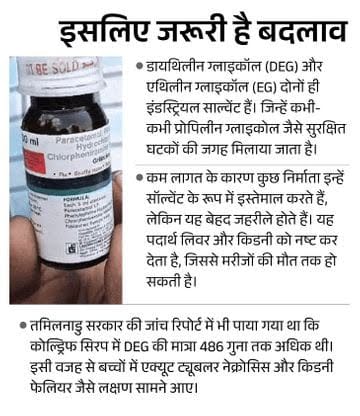 इस घटना के बाद अब देशभर में बनने वाले हर ओरल लिक्विड सिरप में डायथिलीन ग्लाइकॉल (DEG) और एथिलीन ग्लाइकॉल (EG) की जांच अनिवार्य होगी।