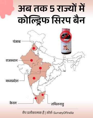 राजस्थान की सरकारी सप्लाई में भी इनपर रोक यही फार्मूले वाली सिरप राजस्थान की सरकारी सप्लाई में भी पाई गई थी, जहां इसे पीने से एक बच्चे की मौत हुई और कुछ डॉक्टर बीमार पड़े। इसके बाद एहतियात के तौर पर प्रदेश में भी इनकी सप्लाई रोकी गई है। अधिकारियों के अनुसार, चार सिरप के सैंपल जांच के लिए भेजे गए हैं। रिपोर्ट आने तक वितरण स्थगित रहेगा। तीन जांचें अब तक ठीक मिली हैं।