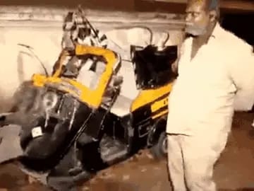 कार की टक्कर के बाद ऑटो रिक्शा बुरी तरह क्षतिग्रस्त हो गया।