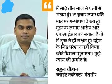 इंदौर पुलिस ने मंदसौर के जॉइंट कलेक्टर राहुल चौहान के खिलाफ दहेज प्रताड़ना की FIR दर्ज की है। पत्नी का आरोप है कि शादी के बाद से ही दहेज के लिए प्रताड़ित किया जाता रहा लेकिन अधिकारी होने के दबाव-प्रभाव के कारण रिपोर्ट दर्ज नहीं की गई