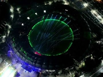 हैदराबाद के उप्पल स्टेडियम में लेजर शो में मेसी का चेहरा बनाया