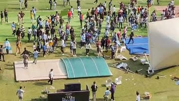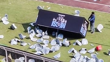 नाराज फैंस ने कुर्सी और बोतलें फेंकना शुरू कर दिया।