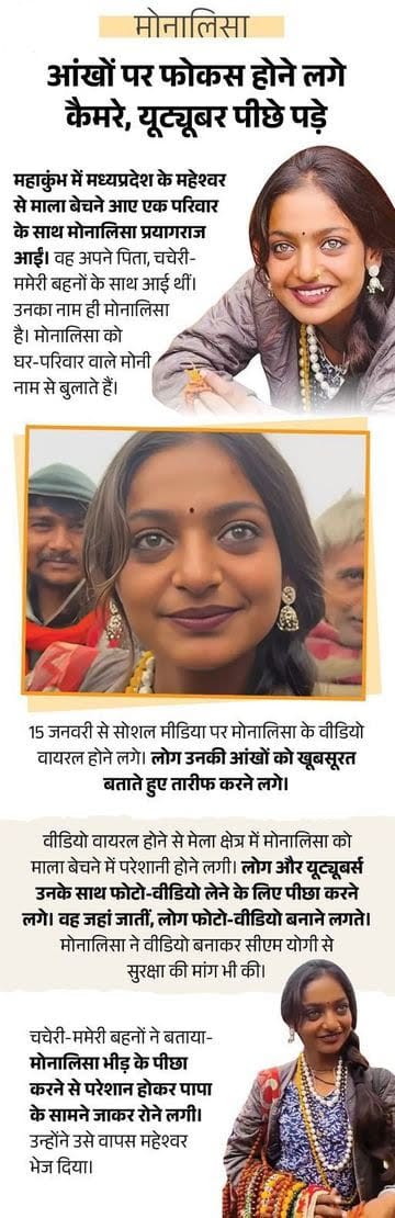 यह कहते हुए मोनालिसा की मां लता भोंसले छाती पीट-पीटकर रोने लगती है। मोनालिसा भोंसले प्रयागराज कुंभ 2025 से चर्चा में आई थी। अब अपने बॉयफ्रेंड फरमान से केरल में शादी करने के बाद एक बार फिर सुर्खियों में है।