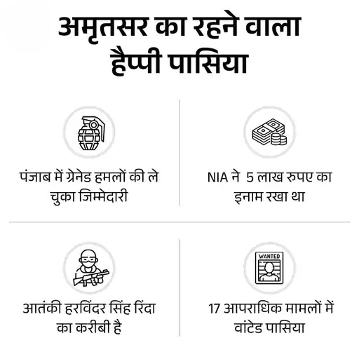 हमले की जिम्मेदारी बब्बर खालसा इंटरनेशनल से जुड़े हैप्पी पासिया, मनू आगवन और गोपी नवांशहरिया ने सोशल मीडिया पर पोस्ट कर ली थी। पुलिस ने दावा किया था कि ये हमला उत्तर प्रदेश के पीलीभीत और पंजाब में ग्रेनेड हमलों के आरोपी को मारने का बदला लेने के लिए किया गया था।