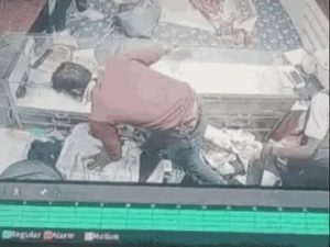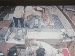 एक बदमाश ने दुकान में बिछी चादर को खींचा और मुनीम के पैर बांध दिए। फिर दो लोगों ने अलमारी और काउंटर से जेवर निकालकर बैग में भरे। पूरे समय एक बदमाश ने मुनीम को दबोचे रखा। आखिर में चारों बदमाश बैग में जेवर भरकर बाहर निकलकर भाग निकलते हैं।