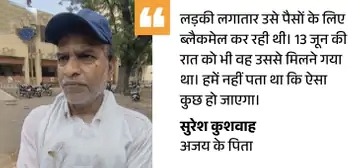 अपने बेटे को भी समझा दो कि वह मेरी बेटी से शादी का सपना छोड़ दे। पिता पांच लाख रुपए मांग रहा था और बेटी तीन लाख रुपए। अजय के पिता सुरेश ने बताया कि जब से लड़की के परिवार वाले धमकाकर गए थे, तभी से बेटा डिप्रेशन में था।