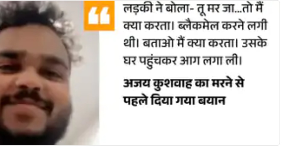 अजय ने भी मौत से पहले अपने आखिरी वीडियो में कहा है कि वह उससे मिलने गया था, लेकिन लड़की उसे ब्लैकमेल कर रही थी। मैंने उससे कहा कि अगर हमारा प्यार कुछ नहीं है, तो बता दो। इस पर उसने कहा, “तू मर जा, फिर मैं क्या करता? और मैंने खुद को आग लगा ली।