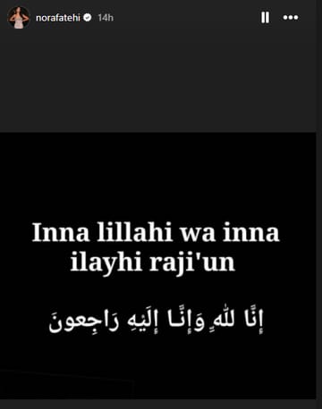रविवार को नोरा फतेही ने अपने ऑफिशियल इंस्टाग्राम अकाउंट से एक स्टोरी शेयर कर लिखा है, इन्ना लिल्लाही व इन्ना इलैही राजिउन।