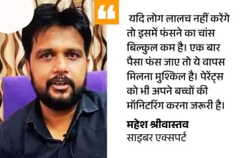गेंबलिंग एप में जीत का चस्का लगाकर: श्रीवास्तव कहते हैं कि कुछ गेंबलिंग एप होते हैं जो गूगल प्ले स्टोर पर नहीं मिलते। इनके लिंक सोशल मीडिया प्लेटफॉर्म के जरिए मिलती है। ये सीधे सीधे सट्टा खिलाते हैं। पहले सट्टा खेलने वाले को जीत का चस्का लगाते हैं। उसके बाद जब वो हारने लगता है तो और ज्यादा जीतने के लालच में पैसा गवां देता है।