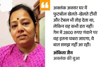ये कहते हुए अंकिता जैन की आंखें भर आती हैं। दरअसल, अंकिता 13 साल के अक्लंक जैन की बुआ है। इंदौर के बिजनेसमैन के बेटे अक्लंक ने 30 जुलाई को अपने ही घर में फांसी लगाकर खुदकुशी कर ली थी। उसने ये कदम ऑनलाइन गेम में 2800 रु. की मामूली रकम हारने के बाद उठाया था।