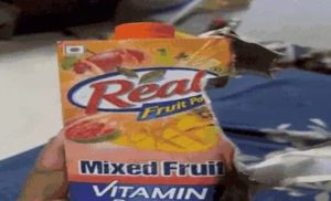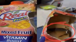 जूस के पैकेट में मरा हुआ चूहा मिला है।