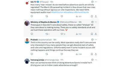 गोवा में छुट्टियां मनाने गए टूरिस्ट्स की जान उस वक्त हलक में आ गई, जब बागा बीच पर पैरासेलिंग के दौरान बीच हवा में नाव से बंधी उनके साथी की रस्सी टूट गई। आसमान में उड़ रहा टूरिस्ट सीधे समंदर में जा गिरा। इस पूरी घटना का दिल दहला देने वाला वीडियो सामने आया है। नाव पर मौजूद क्रू ने उनकी जान तो बचा ली, लेकिन इस हादसे ने भारत में ‘एडवेंचर स्पोर्ट्स’ के नाम पर चल रहे जुगाड़ और सेफ्टी के दावों की पोल खोलकर रख दी है