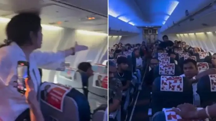 फ्लाइट जिसके बाद उसके साथ और लोग भी आ जाते हैं, जो ‘फ्लाइट रोको’, ‘फ्लाइट रोको’ चिल्लाने लगते हैं। वीडियो बना रहा बंदा कहता है कि ‘कोई नहीं दूसरी फ्लाइट में चले जाएंगे, जान ज्यादा जरूरी है।’ पीछे से एक महिला की भी आवाज सुनाई देती है, जो कह रही होती है कि ‘AC नहीं चल रहा, आधे घंटे में BP लो होने लगेगा।’, वीडियो के अंत में शख्स कहता है कि ऐसा ही अहमदाबाद की फ्लाइट में भी हुआ था, AC नहीं चल रहा था।