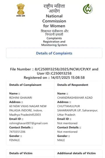 पुलिस बोली- 24 घंटे में FIR होगी, फिर कहा- ऊपर से ऑर्डर नहीं रोहिणी कहती हैं कि पहली बार मैंने 23 जून, 2025 को राष्ट्रीय महिला आयोग, दिल्ली कमिश्नर ऑफिस और दिल्ली पुलिस के पास शिकायत भेजी थी। राष्ट्रीय महिला आयोग में यौन उत्पीड़न की शिकायत दर्ज हुई है। हालांकि पुलिस ने कहा कि मैं जब यहां आऊंगी, तब ही FIR दर्ज हो पाएगी। क्योंकि ऐसे मामलो में विक्टिम का होना जरूरी है।