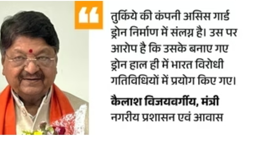 मंत्री ने बयान क्यों दिया? कैबिनेट मंत्री विजयवर्गीय ने बताया- सूत्रों के अनुसार, ‘असिस गार्ड’ के ड्रोन कथित तौर पर पाकिस्तान द्वारा भारत विरोधी गतिविधियों में इस्तेमाल किए गए थे। अधिकारियों को निर्देश दिए हैं कि कंपनी की भूमिका की गहन जांच की जाए। यदि यह साबित होता है कि कंपनी या उसके उत्पाद भारत विरोधी गतिविधियों में शामिल हैं, तो उसका अनुबंध तत्काल प्रभाव से रद्द कर दिया जाएगा।