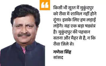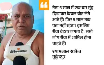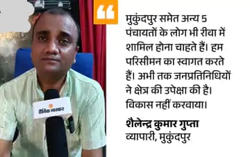 मुकुंदपुर निवासी श्यामलाल साकेत का कहना है कि यहां के लोगों का काम बिना रीवा गए तो होता ही नहीं है। सतना और मैहर तो हमारे लिए एक मजबूरी की तरह है, हर काम के लिए तो हमें रीवा ही जाना पड़ता है। क्योंकि जनप्रतिनिधियों ने कभी ध्यान नहीं दिया और ना ही हमारे क्षेत्र का विकास किया। जो नेता 5 साल में एक बार मुंह दिखाने आते हैं, वो अब कह रहे हैं कि मुकुंदपुर को नहीं देंगे। आखिर अचानक उनका मोह क्यों जग गया।