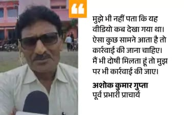 मैं दोषी मिला तो मुझ पर भी कार्रवाई करें’ पूर्व प्राचार्य अशोक कुमार गुप्ता ने बताया कि मंगलवार रात उन्हें इस वीडियो के बारे में पता चला। रात को मुझे वॉट्सएप पर एक लेटर भेज कर शिक्षा विभाग के अधिकारियों ने कहा कि, एक समिति आपसे कुछ जानकारी ले सकती है। उनका सहयोग करना है। उन्होंने स्पष्ट किया, मैं दो साल तक प्रभारी प्राचार्य रहा हूं। यदि जांच में मैं दोषी पाया जाता हूं, तो मुझ पर भी कार्रवाई हो, इसके लिए मैं तैयार हूं। मैं जांच में पूर्ण सहयोग करूंगा।