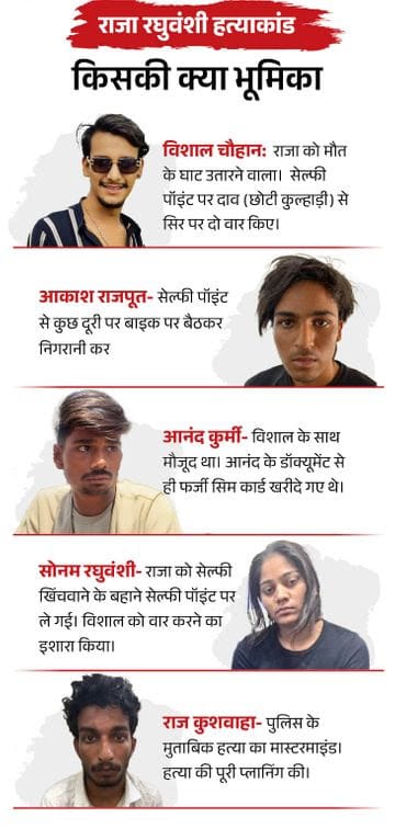 जहां वो 23 मई को हनीमून के दौरान लापता हो गए थे। 10 दिन बाद पुलिस ने 30 फीट गहरी खाई से उनका क्षत-विक्षत शव बरामद किया, जिस पर धारदार हथियार से किए गए कई घाव थे। सोनम तब लापता थी। इसके बाद यूपी में उसने सरेंडर किया था। उससे पूछताछ के बाद आकाश, आनंद और विशाल को पकड़ा था।
