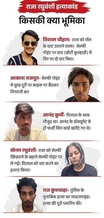 इसके पहले बुधवार को भी सोनम वीडियो कॉन्फ्रेंसिंग के माध्यम से विपिन के सामने आई थी। विपिन ने बताया कि राज कुशवाह सहित चारों आरोपी भी वीडियो कॉन्फ्रेंसिंग के माध्यम से कोर्ट में उनके सामने आए थे।