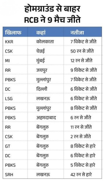 इंदौर के रजत पाटीदार की कप्तानी में रॉयल चैलेंजर्स बैंगलुरु (आरसीबी) ने IPL-2025 की ट्रॉफी अपने नाम की। RCB ने 18 सीजन में पहला टाइटल जीता है। अहमदाबाद के नरेंद्र मोदी स्टेडियम में मंगलवार को पंजाब किंग्स को 6 रन से फाइनल में हराया था। IPL में पहली बार कप्तानी कर रहे रजत पाटीदार ने RCB को घर से बाहर सभी मैच जिताए। टीम ने 11 मैच जीते।