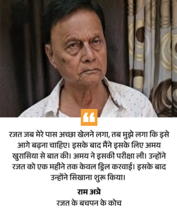 रजत पाटीदार ने बचपन में जिन कोच से ट्रेनिंग ली।बचपन के कोच राम अत्रे से बात की। उन्होंने बताया कि रजत एक सिंसियर और मेहनती खिलाड़ी थे, जो मैदान पर पूरी लगन से प्रैक्टिस करते थे।