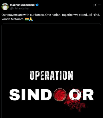मधुर भंडारकर ने पोस्ट शेयर कर कहा, हमारी दुआएं सेना के साथ हैं। एक देश, हम साथ खड़े हैं। जय हिंद, वंदे मातरम।