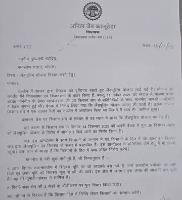लैंड पूलिंग पर भाजपा में बगावत: उज्जैन उत्तर विधायक अनिल जैन कालूहेड़ा ने सीएम को पत्र लिखकर अपनी ही सरकार के खिलाफ खोला मोर्चा, 26 दिसंबर के किसान आंदोलन में शामिल होने का ऐलान