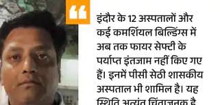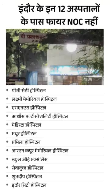 इंदौर के 12 बड़े अस्पतालों में भर्ती मरीजों की जान खतरे में है, क्योंकि इनके पास आग बुझाने के बेसिक इंतजाम तक नहीं हैं। इनमें सरकारी पीसी सेठी अस्पताल भी शामिल है। इसका खुलासा एक आरटीआई से हुआ है