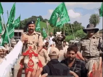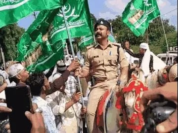 ईद मिलाद उन नबी के जुलूस में एसडीओपी धार्मिक झंडा पकड़े नजर आए।