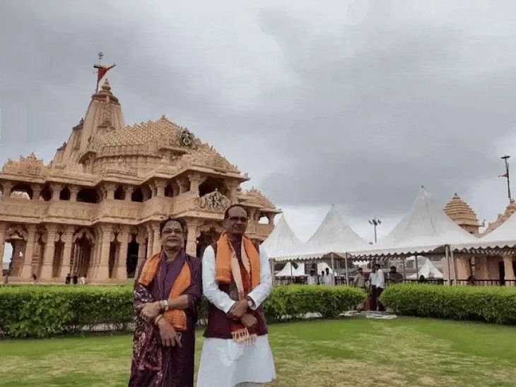 सोमनाथ मंदिर में साधना सिंह ने माथा टेका और शिवराज ने ध्यान किया।