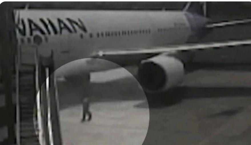 कैलिफोर्निया से हवाई आई फ्लाइट के पहिए से बाहर निकलते वक्त याह्या अब्दी। एयरपोर्ट सिक्योरिटी के कैमरे में कैद।