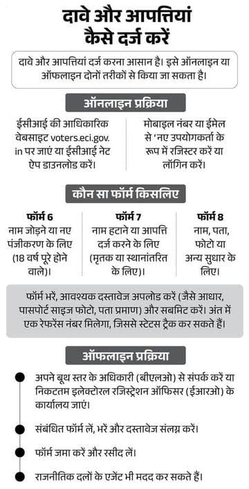 2. ड्राफ्ट मतदाता सूची में नाम न हो तो क्या करें? – आप फॉर्म-6 भरकर अपना नाम जुड़वा सकते हैं। नए मतदाताओं को भी फॉर्म-6 भरना होगा।