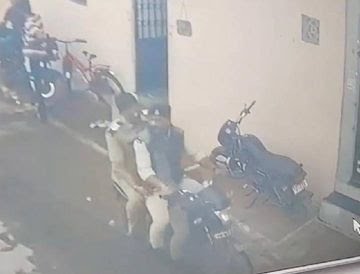 वीडियो में युवक को बाइक पर बैठाकर ले जाती पुलिस।