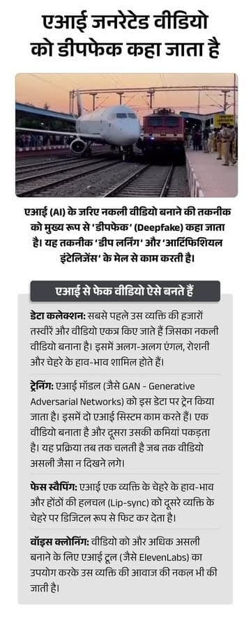 AI जनरेटेड वीडियो से स्टेशन दिखाया अभी पटेल ने एआई जनरेटेड वीडियो में जबलपुर रेलवे स्टेशन दिखाया। फिर ट्रैक पर इंजन खड़ा कर दिया, उसके बगल से एक बड़ा हवाई जहाज भी खड़ा था। दोनों में टक्कर हो गई। वीडियो में अभी पटेल स्वंय कमेंट्री भी करते हुए पूरी घटना बता रहा है।