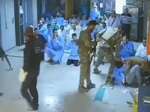 हॉस्पिटल में डॉक्टर-नर्स की ड्रेस में पुरुषों के एक बड़े समूह को बंदूक की नोक पर इन लड़ाकों ने फर्श पर घुटनों के बल बैठा रखा है. एसओएचआर द्वारा सीरियाई रक्षा और आंतरिक मंत्रालयों के सदस्यों के रूप में पहचाने गए कई हथियारबंद लोगों (लड़ाकों) को उनके आसपास देखा जा सकता है