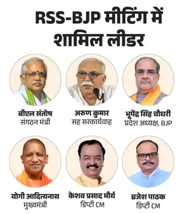 राज्यसभा सांसद अमरपाल मौर्य और BJP किसान मोर्चा के प्रदेश अध्यक्ष कामेश्वर सिंह मीटिंग के कोऑर्डिनेटर रहे। दोनों को RSS का करीबी माना जाता है। सोर्सेज के मुताबिक, इन बैठकों में RSS ने शासन से जुड़े मुद्दों पर फीडबैक लिया। साथ ही संगठन और सरकार के बीच प्लानिंग बेहतर करने के सुझाव दिए।