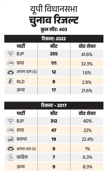 ‘दरअसल 2022 का विधानसभा चुनाव पार्टी ने योगी आदित्यनाथ के नेतृत्व में लड़ा था। इस पर पार्टी के अंदर सवाल उठे। उस वक्त कई नाम सीएम की रेस में आ गए थे। इसका असर ये हुआ कि 2017 के मुकाबले BJP की 57 सीटें घट गईं। पार्टी ने 2017 में 312 सीटें जीती थीं, जो 2022 में 255 रह गईं।’