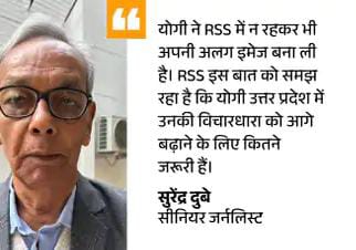 योगी की हिंदू फायर ब्रांड इमेज RSS को पसंद सीनियर जर्नलिस्ट सुरेंद्र दुबे कहते हैं, ‘योगी कभी RSS से नहीं जुड़े। 2017 में BJP हाईकमान ने योगी को यूपी की कमान सौंप दी। पार्टी का ये प्रयोग कामयाब रहा और योगी हिंदू फायर ब्रांड नेता के तौर पर उभरे।’
