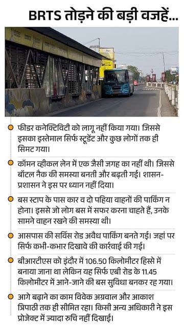 एक ओर की रेलिंग नहीं हटाने से ट्रैफिक बदहाल याचिकाकर्ता की ओर से एडवोकेट अजय बागडिया ने कहा कि वर्तमान में बीआरटीएस की एक हिस्से की रेलिंग हटाने से सड़क चौड़ी जरूर हुई है। इससे भंवरकुआ से विजय नगर की ओर आने वाले वाहनों चालकों को अब 1/3 हिस्सा मिल भी रहा है।