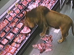 मीट के लिए मचाई भगदड़ (African lion supermarket incident)