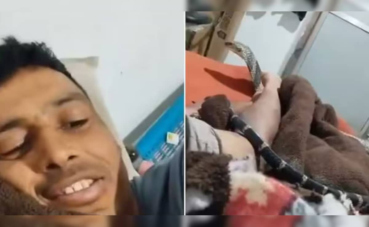 शख्स के ऊपर रेंगता रहा किंग कोबरा (King Cobra on Bed)