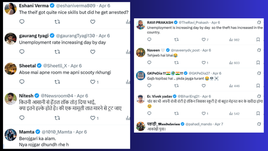 यूजर्स ने वीडियो पर मजेदार और हैरान कर देने वाली प्रतिक्रियाएं दी हैं। एक यूजर ने लिखा- कितनी आसानी से लॉक टूट गया, क्या इतने हल्के होते हैं? एक अन्य ने तंज कसते हुए कहा- बेरोजगारी का आलम देखिए, चोर भी अब प्रोफेशनल बन चुके हैं। वहीं किसी ने लिखा- अब तो अपनी स्कूटी रूम में ही पार्क करनी पड़ेगी। कुछ लोगों ने चोर की चालाकी की तारीफ भी की और सवाल पूछा – क्या यह पकड़ में आएगा?