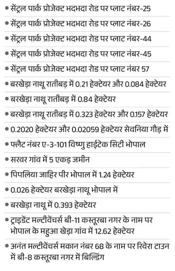 अबतक 24 प्रॉपर्टी अटैच कर चुका आयकर विभाग आयकर विभाग भोपाल में मौजूद राजेश शर्मा और उनकी पत्नी राधिका शर्मा के नाम की 24 प्रॉपर्टी अटैच कर चुका है। इसमें 16 प्रॉपर्टी राधिका के नाम पर हैं, जबकि 8 राजेश शर्मा के नाम पर हैं।
